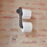 PAPÍRTÖRLŐ TARTÓ LOFT DESIGN ÖNTÖTTVAS CSŐ ELEMEKBŐL, INDUSTRIAL HANGULATÚ KONYHAI FELSZERELÉS ÖREGÍTETT FA POLCCAL